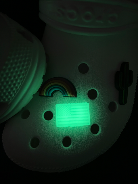 Hand-made in Texas, USA, these glow flag croc charms in the shape of freedom are perfect to shove into your Croc's glory hole! 🇺🇸