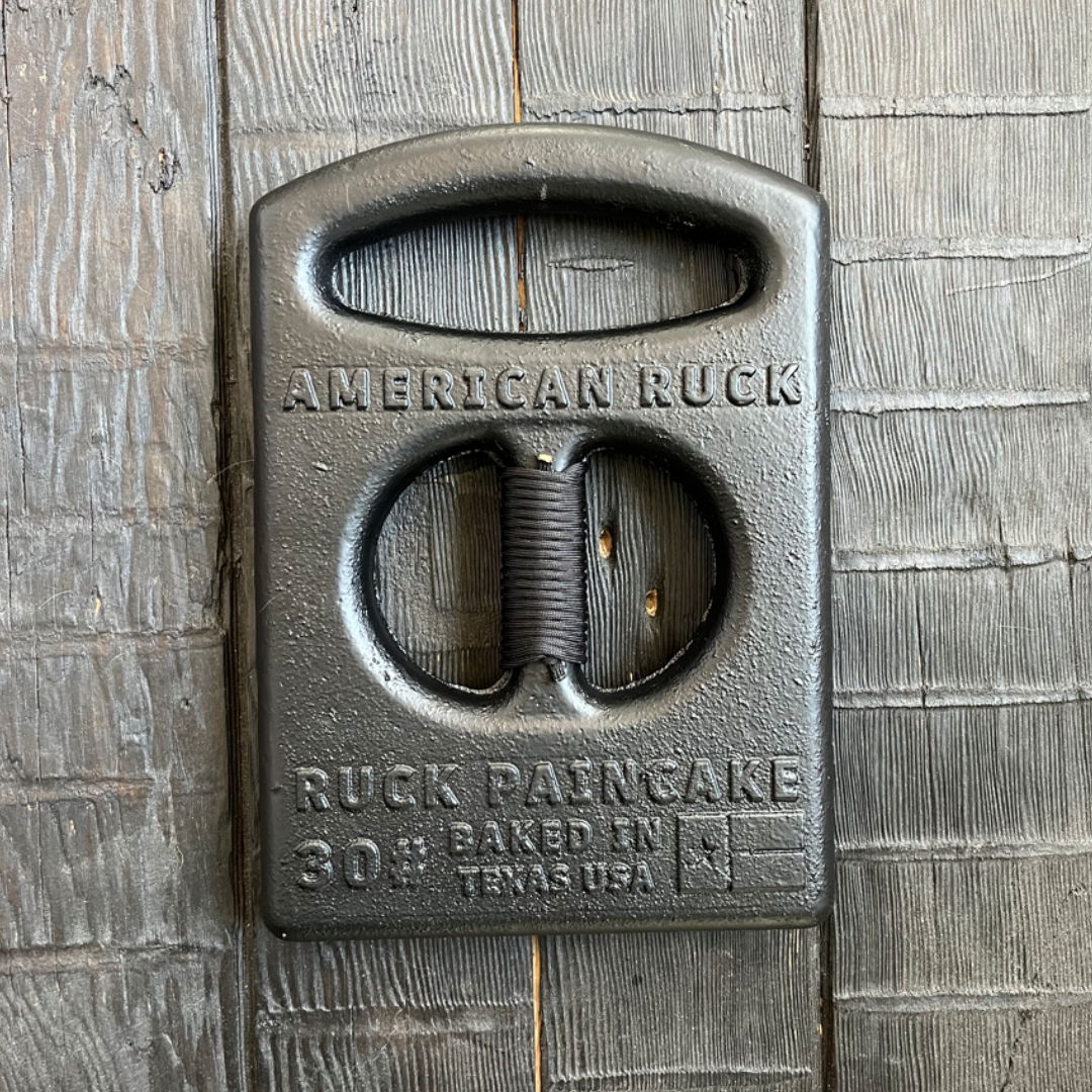 The 30lb. Ruck Paincake 2.0 is our brand-new model and now has competition weight specs (+ 3.5%), black matte Line-X finish and even more premium feel. (Yes, these fit standard GoRuck bags for 30lb plates). The Ruck Paincake is an AS-IS PRODUCT.